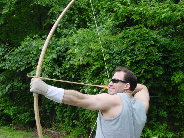 I own a wooden longbow and over time I have learned some interesting things. I wish to share this information, particularly with people who do not own a bow but think they might be interested in archery. First thing is that when you order a longbow, you state your draw length and the draw poundage. Most woodbows go up to 50 lbs but I was able to special order mine for 65 lbs at a 31" draw length at woodbows.com for no extra charge. 65 lbs is near the maximum capacity of the red oak wood that is used in my bow. Yew wood would be much more expensive but is preferable. Initially I was going to get a 33" draw length but it turns out that standard arrows only go up to 31". Arrows are expensive enough without getting into custom stuff so I went with the 31 inch draw. 33 inches would also put the string behind my ear, and that is a fast way to loose your ear.
