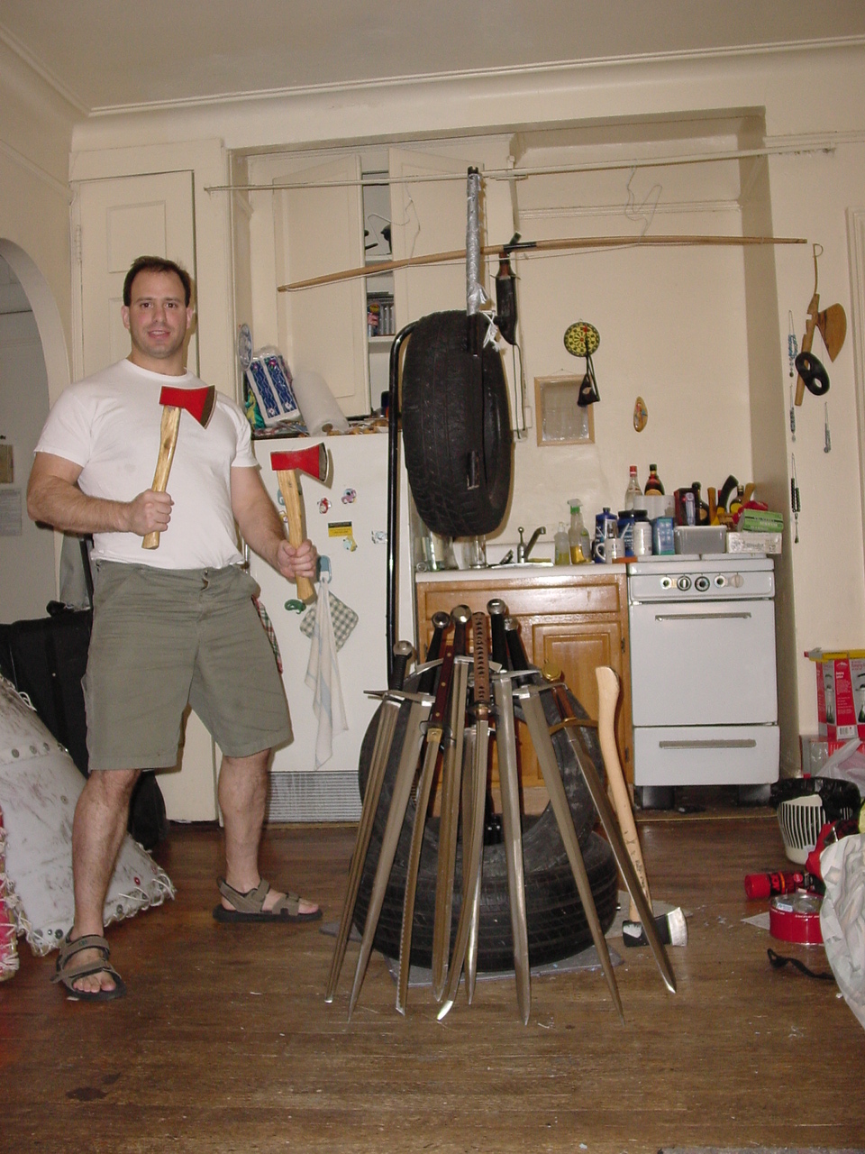 Tire-pell practice with sharp swords should not be done by anyone who is not daring enough to ski, heaven forbid you hit a tree or break your leg. It should not be done by anyone who is not daring enough to ride a motorcycle, despite helmets, if you get in an accident you are in big trouble. I once had a rear wheel lock up on me for no reason at all and then release at 50 mph. I was lucky, not a scratch. It should not be done by someone who would not do rock climbing or scuba diving. Ok, so I have established that tire practice with sharp swords is an extreme activity for extreme people or rather a war like person.